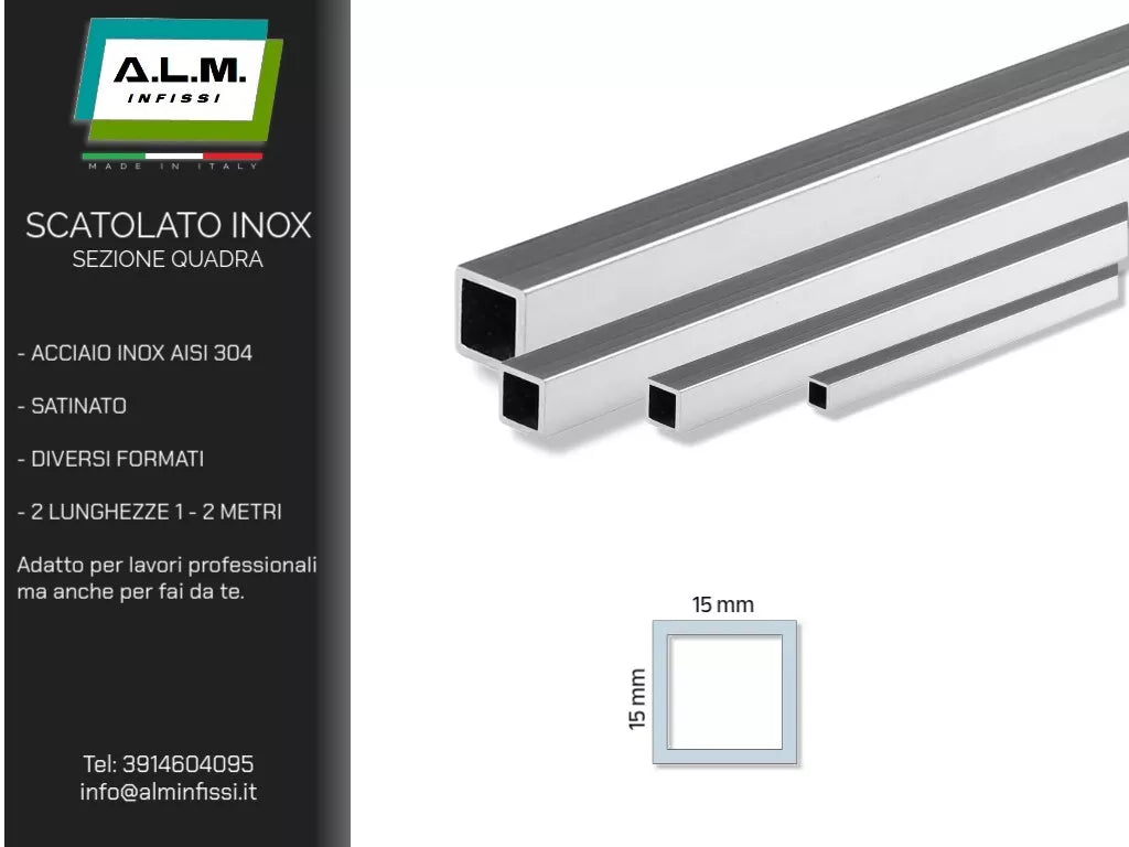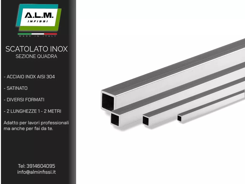 PROFILO TUBO QUADRO in ACCIAIO INOX AISI 304 DIVERSE SEZIONI E LUNGHEZZE